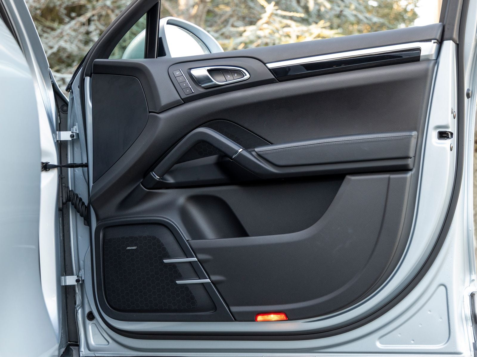 Exterior styling remains both elegant and athletic, highlighted by 19-inch Cayenne Turbo wheels paired with wheel center caps featuring the colored Porsche crest. The electric slide/tilt moonroof allows natural light to fill the cabin, while Bi-Xenon headlights with Porsche Dynamic Light System (PDLS) enhance visibility and adapt to changing driving conditions.
