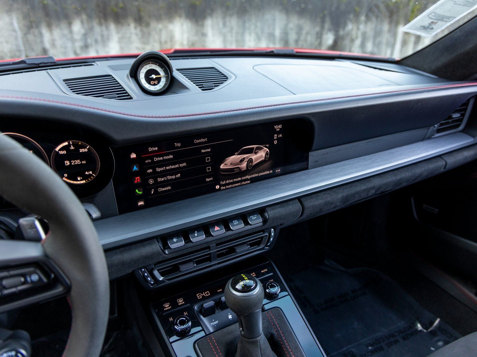 - Radio: Porsche Communication Management (PCM) -inc: online navigation module, Connect Plus (wireless Apple CarPlay and wired Android Auto, LTE communication module, wireless internet access and numerous Porsche Connect Services), SiriusXM w/360L (3-month trial), integration of Apple Music and Apple Podcasts, voice pilot w/natural language understanding and activation via Hey Porsche, navigation plus w/real time traffic Information and online map update, sound package plus (analog sound system, 8 loudspeakers, 150-watt total output w/integral amplifier and digital signal processing) and voice control