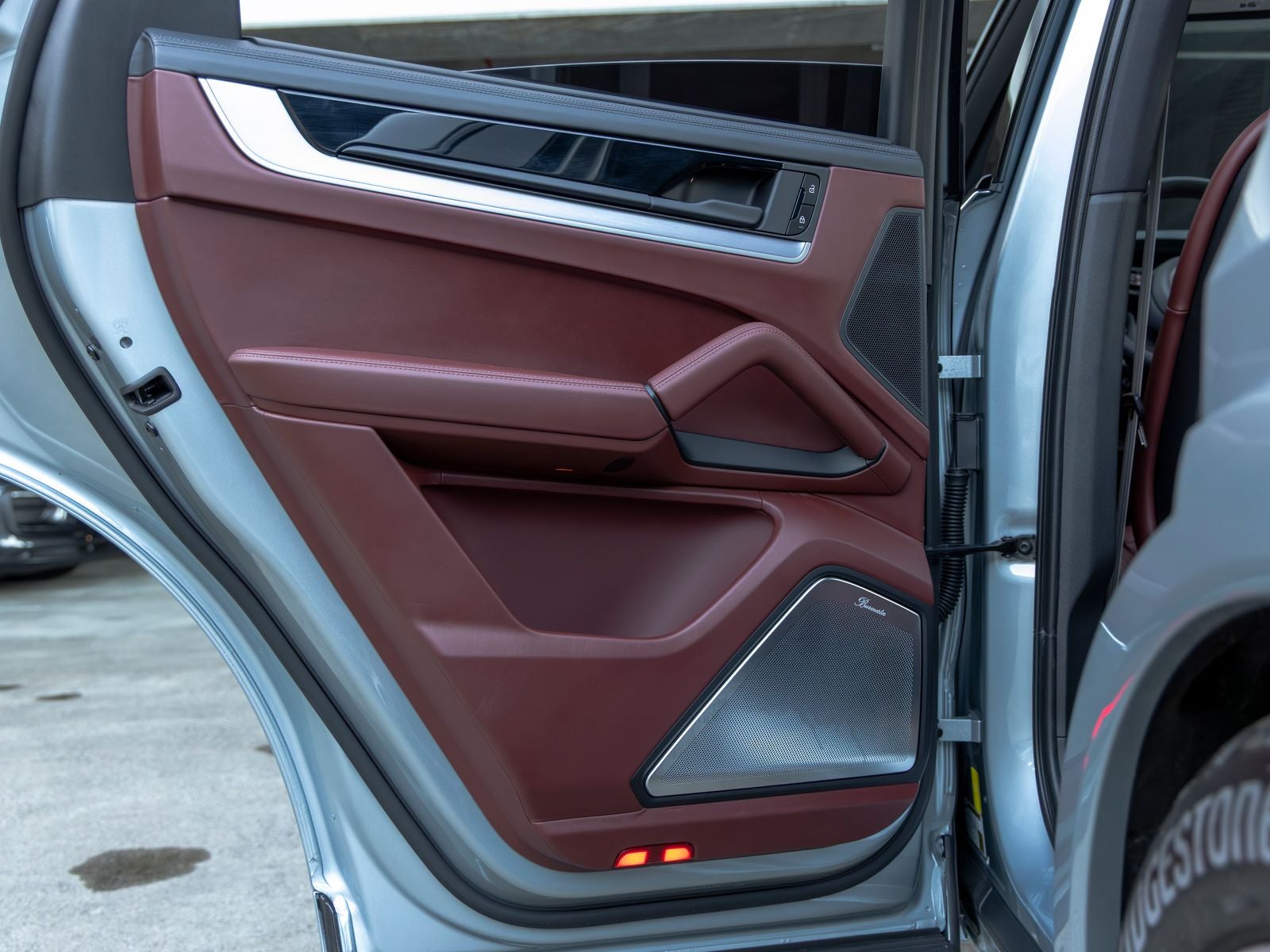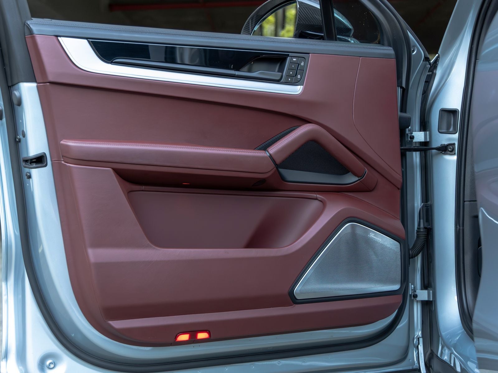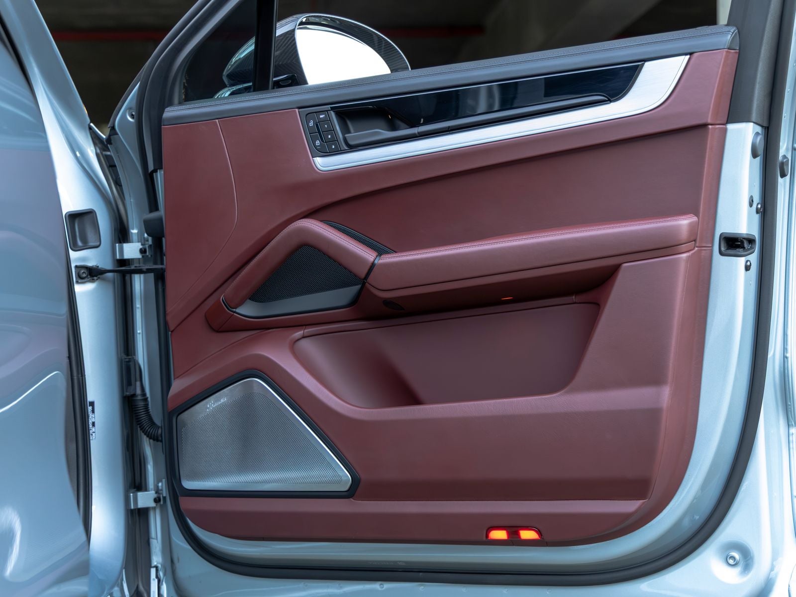 The exterior is enhanced with the SportDesign Package in High Gloss Black, along with carbon fiber mirror housings, high gloss black accents, and 21-inch Exclusive Design wheels, giving this Cayenne a bold and athletic stance. Subtle yet distinctive touches such as the Neodyme model designation on the doors and Dark Bronze sport exhaust tailpipes further elevate its unique appearance.