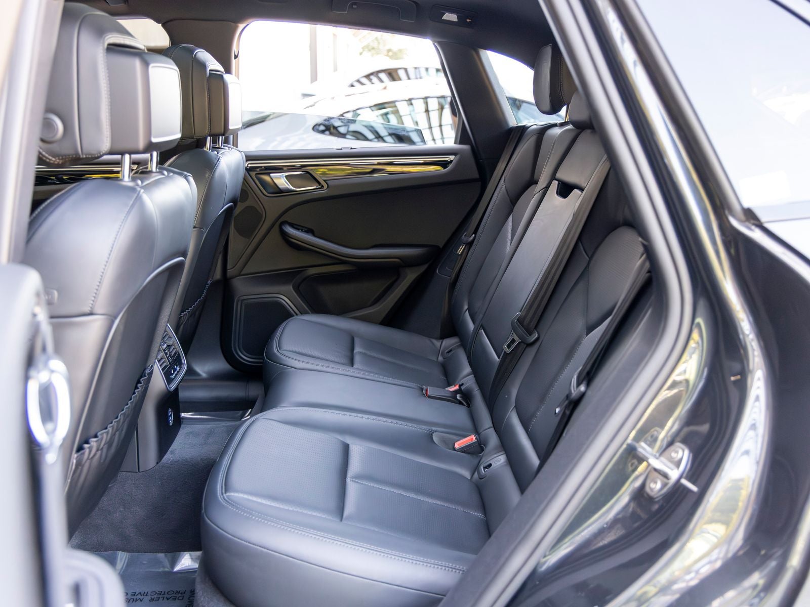 The exterior is distinguished by LED headlights with Porsche Dynamic Light System Plus (PDLS+), clear LED taillights, and 20 Macan S wheels in highly polished dark titanium. Additional highlights such as roof rails in high gloss black, sport tailpipes in silver, an Exclusive Design fuel cap, and under-door puddle light projectors contribute to its sleek and upscale appearance. The panoramic roof system further enhances the driving experience with added openness and natural light.