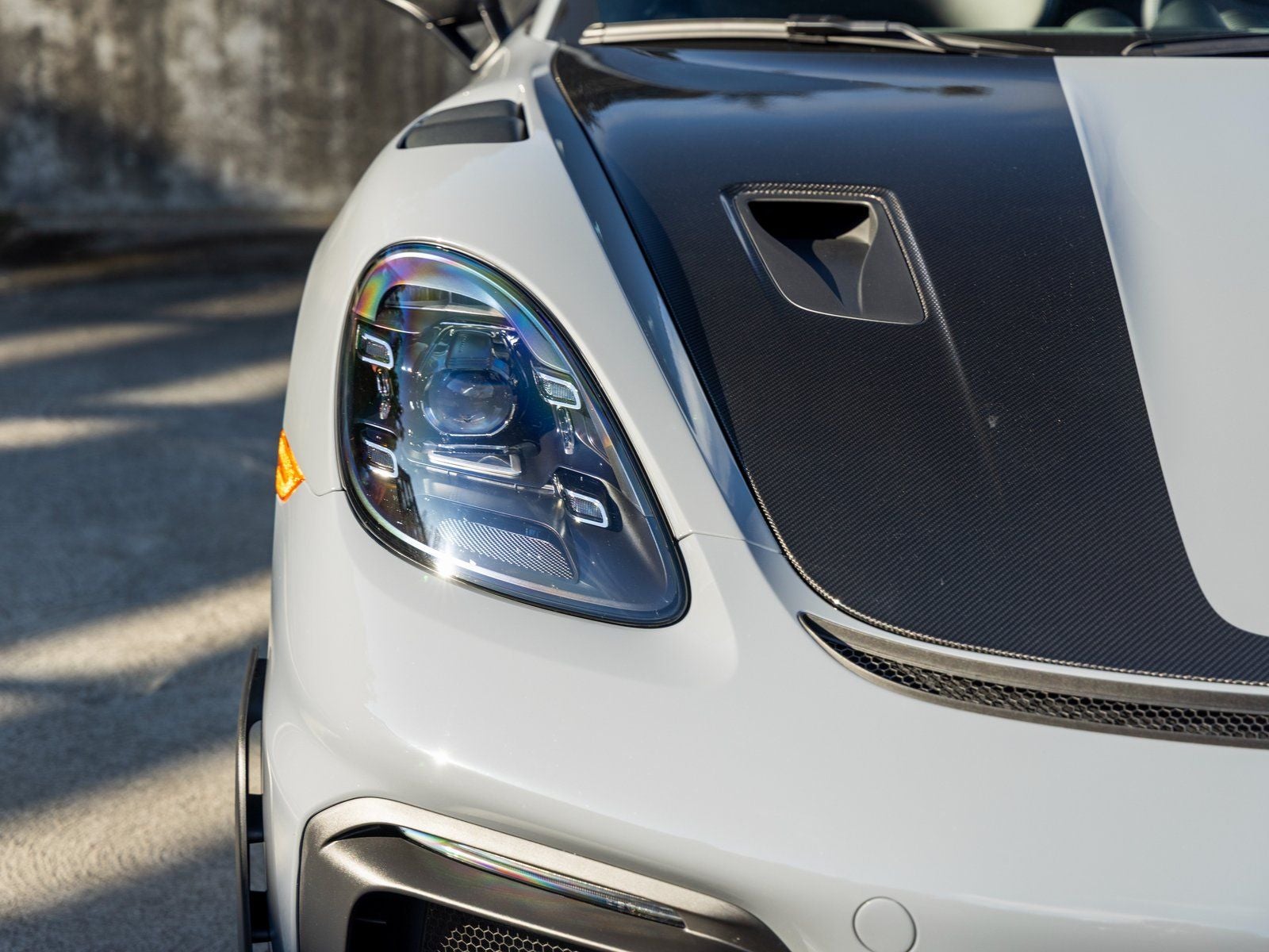 At its core lies a naturally aspirated 4.0-liter flat-six derived from Porsches GT racing program, paired with a lightning-quick PDK transmission for razor-sharp response and an unforgettable soundtrack. The Weissach Package reduces weight and enhances performance with extensive carbon fiber elements, including the front trunk lid in exposed carbon fiber (partially painted), delivering both functional gains and unmistakable visual presence.