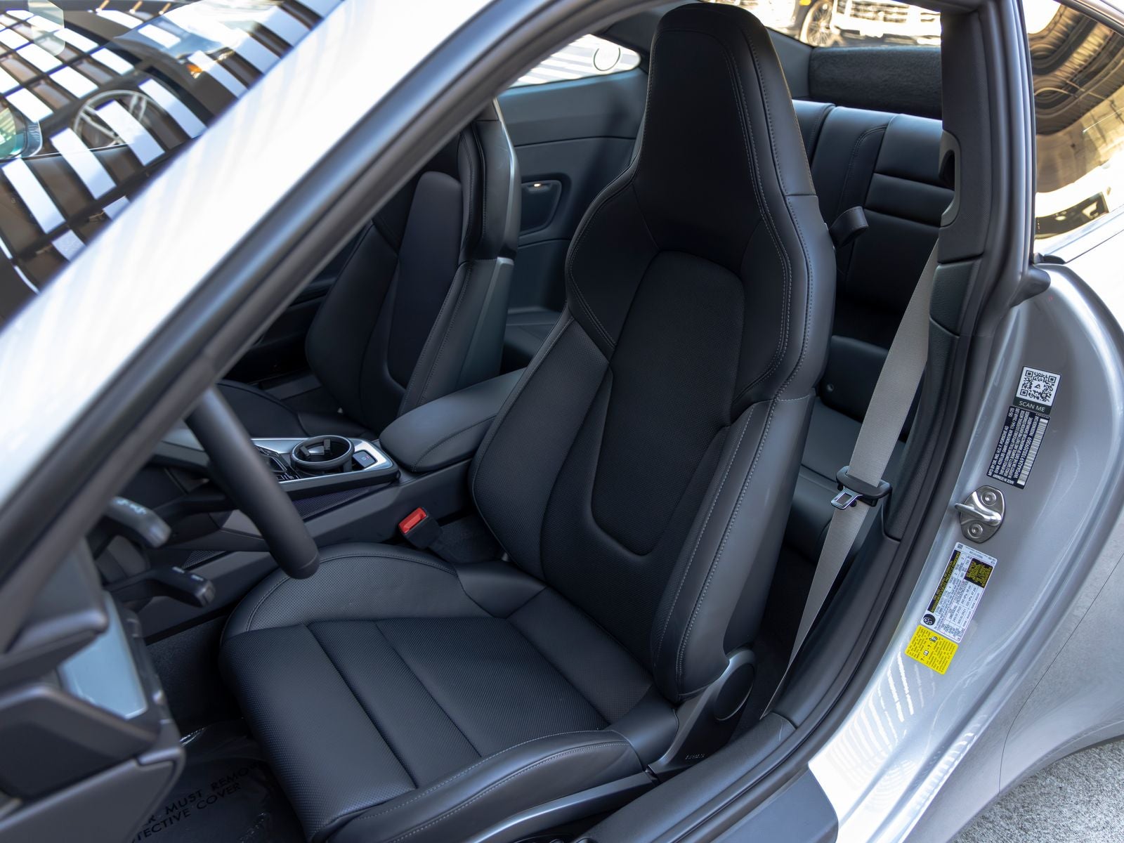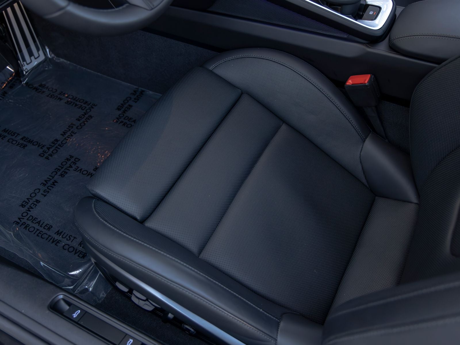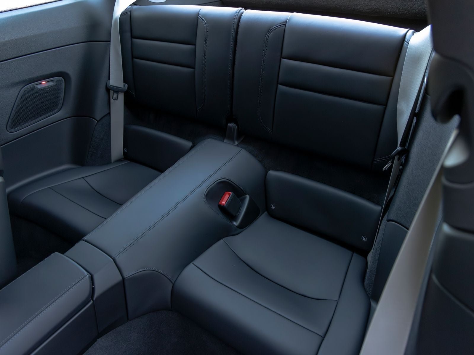 Inside, the cabin maintains a driver-focused yet comfortable environment. Adaptive Sport Seats Plus (18-way) with memory provide exceptional support, complemented by front seat ventilation and the addition of rear seats for increased practicality. Chalk seat belts add a distinctive contrast against the black interior, while interior trim inlays finished in exterior color with black accents tie the design together with a cohesive, sporty aesthetic.