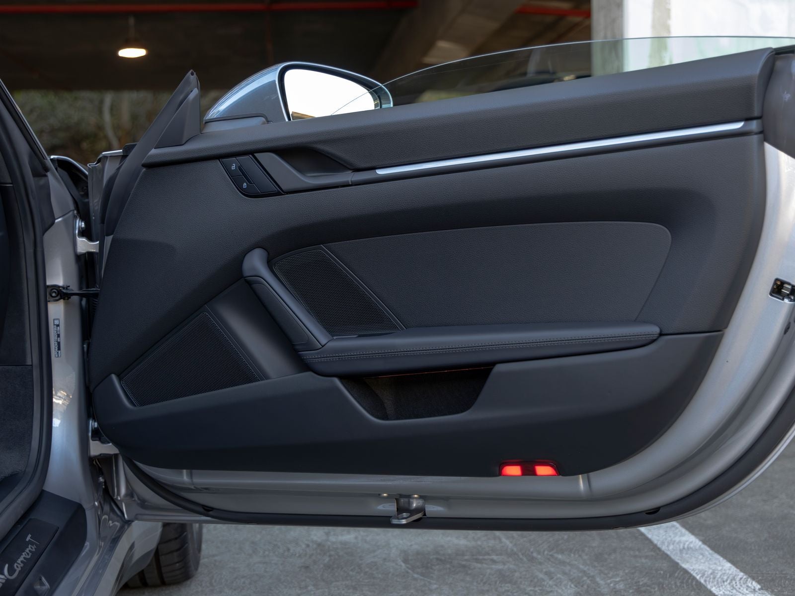 The exterior is clean and understated, with the deletion of the 911 Carrera T side decals creating a more subtle appearance. HD-Matrix Design LED headlights add a modern and highly functional lighting signature, while Exclusive Design fuel cap and Carrera T puddle light projectors introduce refined, model-specific details. Wheel center caps with the colored Porsche crest complete the look with a classic touch.