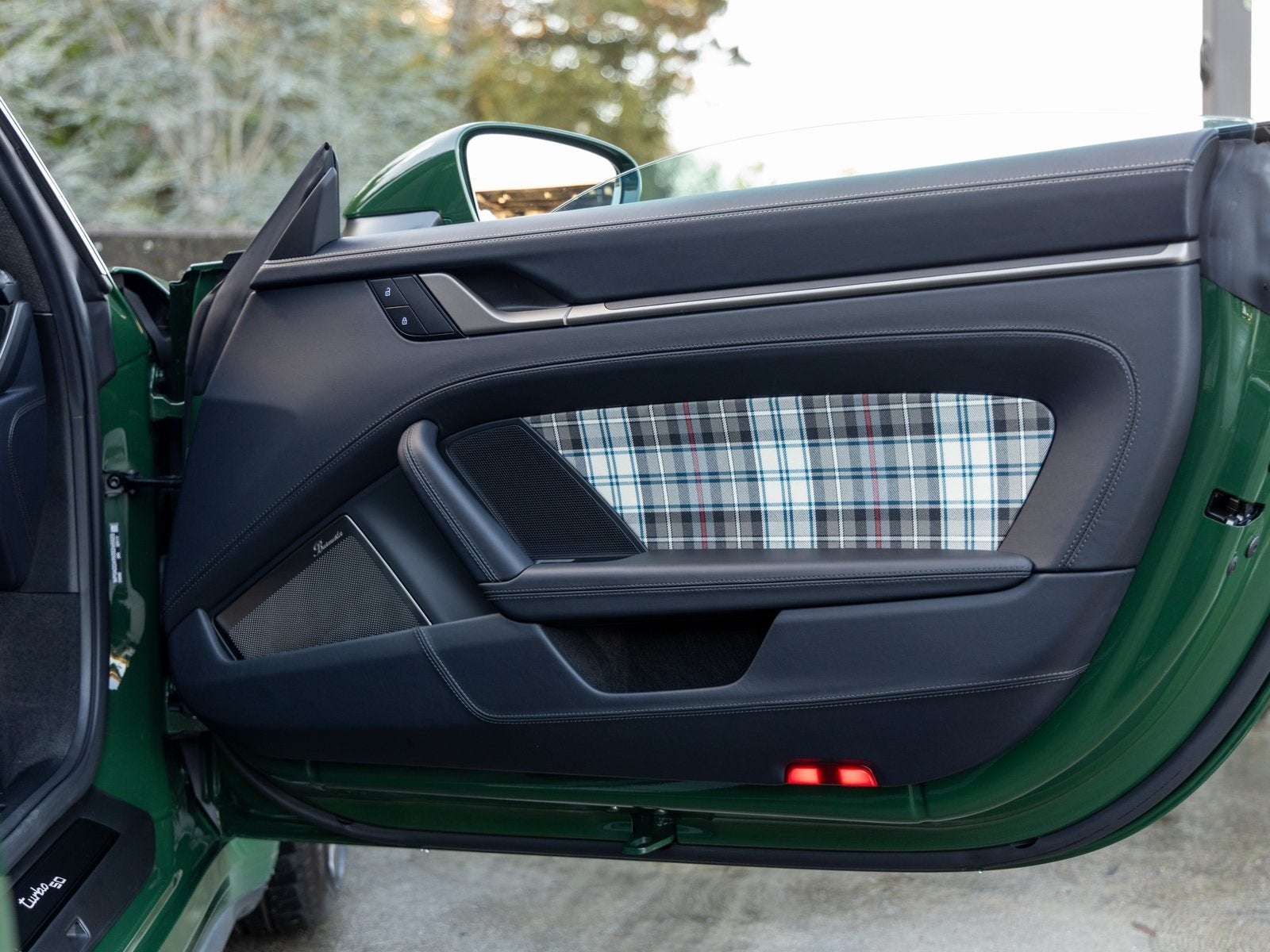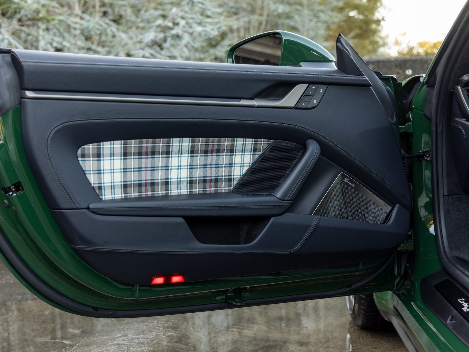 911 Turbo 50 Years Limited Edition Leather Interior in Black with Tartan Fabric Paint to Sample: British Racing Green Sport Exhaust System with Exclusive Design Tailpipes Burmester High-End Surround Sound System Exclusive Design Taillights Lane Change Assist (LCA) Surround View Porsche InnoDrive incl. Adaptive Cruise Control (ACC) and Active Lane Keep Assist High Gloss Black Window Trim Leather Sun Visors Deletion of Historic turbo Side Decals Limited Edition Number