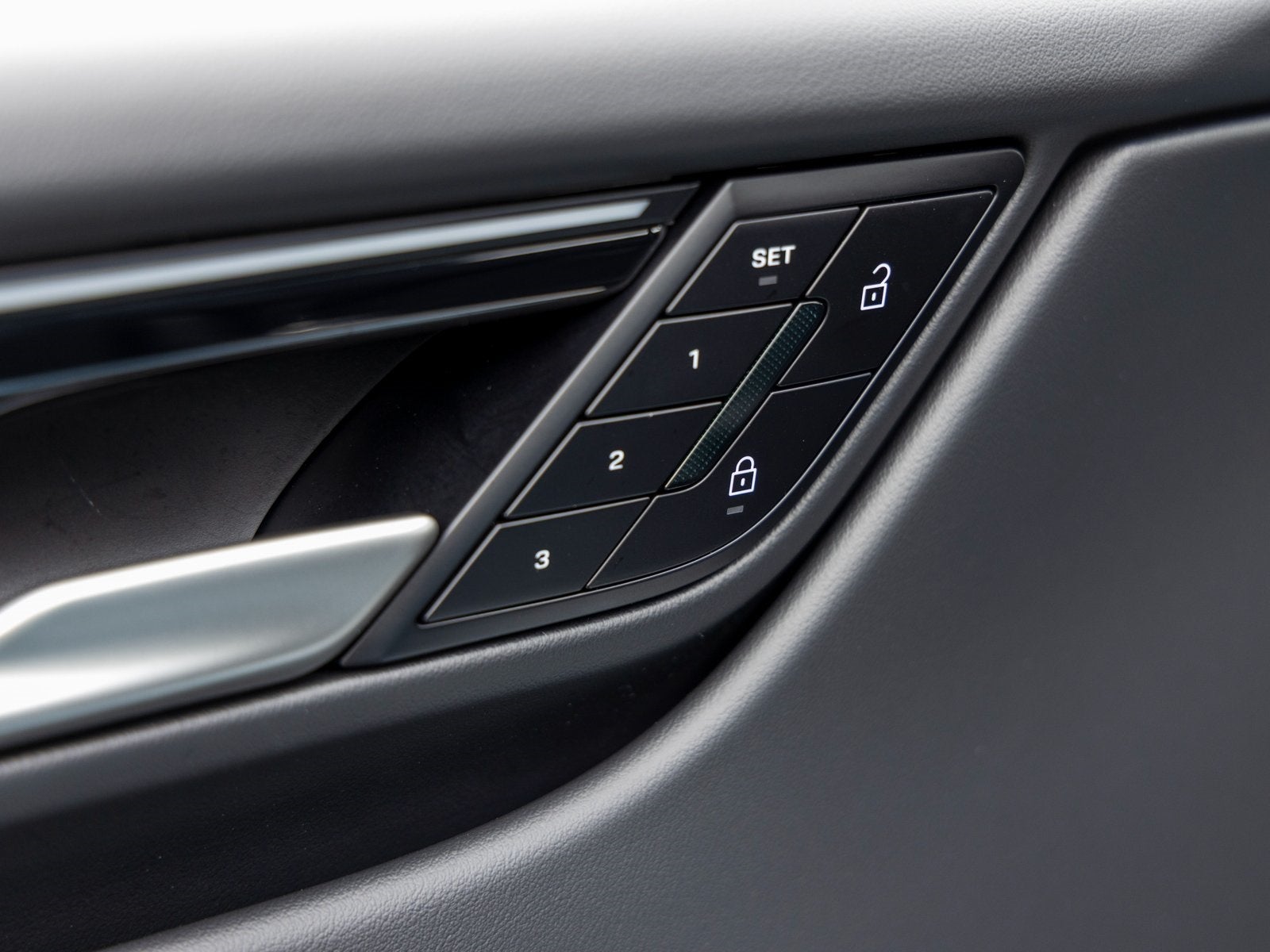 Exterior appointments reinforce the Macan Electrics bold presence. LED-Matrix Design Headlights provide striking illumination and visibility, while 22 RS Spyder Design wheels and wheel center caps with the colored Porsche Crest create a powerful stance. Side Blades painted in Exterior Color, roof rails in Black Aluminum, under door puddle light projectors, and a rear wiper complete the thoughtful and functional specification.