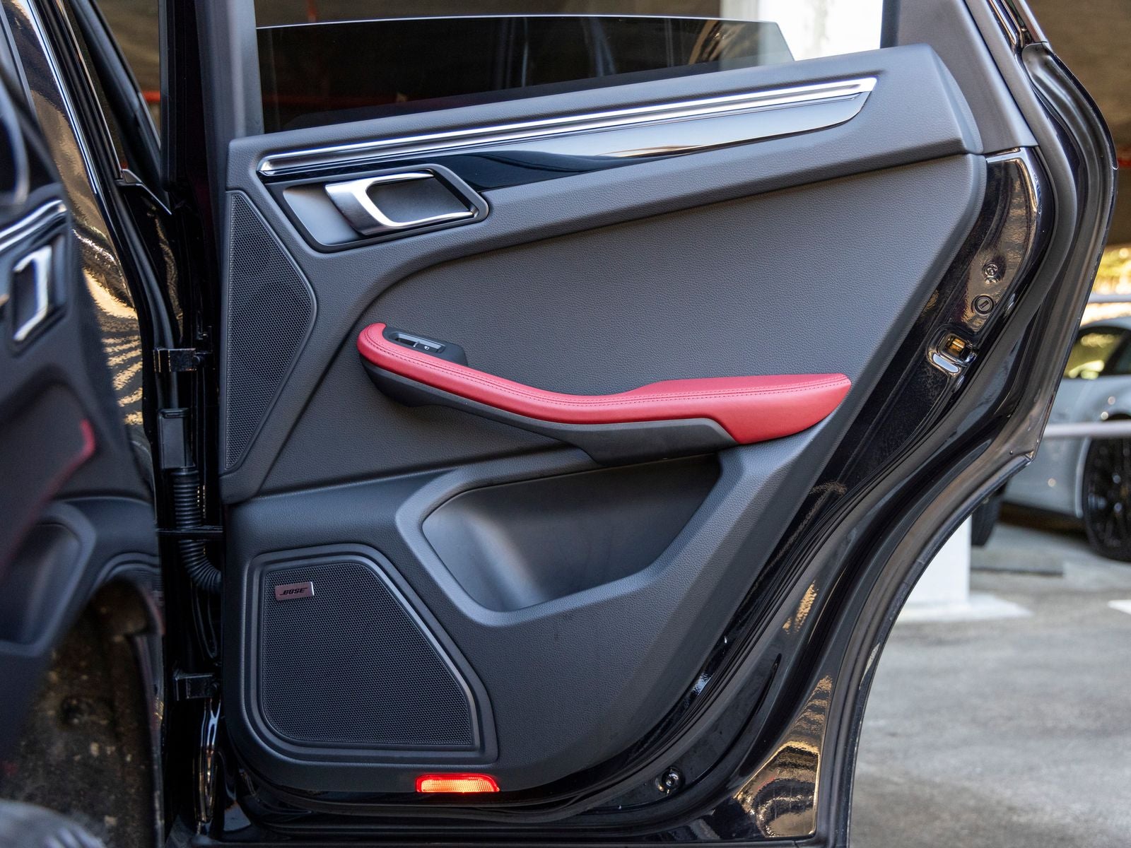 Inside, the Black and Bordeaux Red leather interior creates a bold contrast, reflecting Porsches attention to detail and craftsmanship. The BOSE Surround Sound System delivers an immersive audio experience, while advanced driver assistance features such as Lane Change Assist add confidence on every drive.