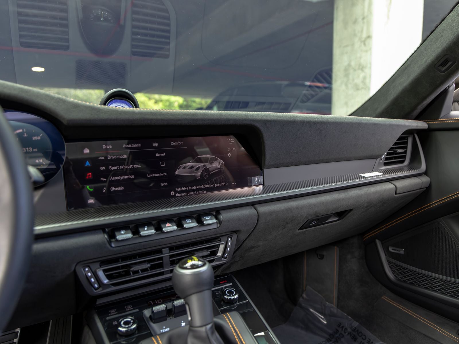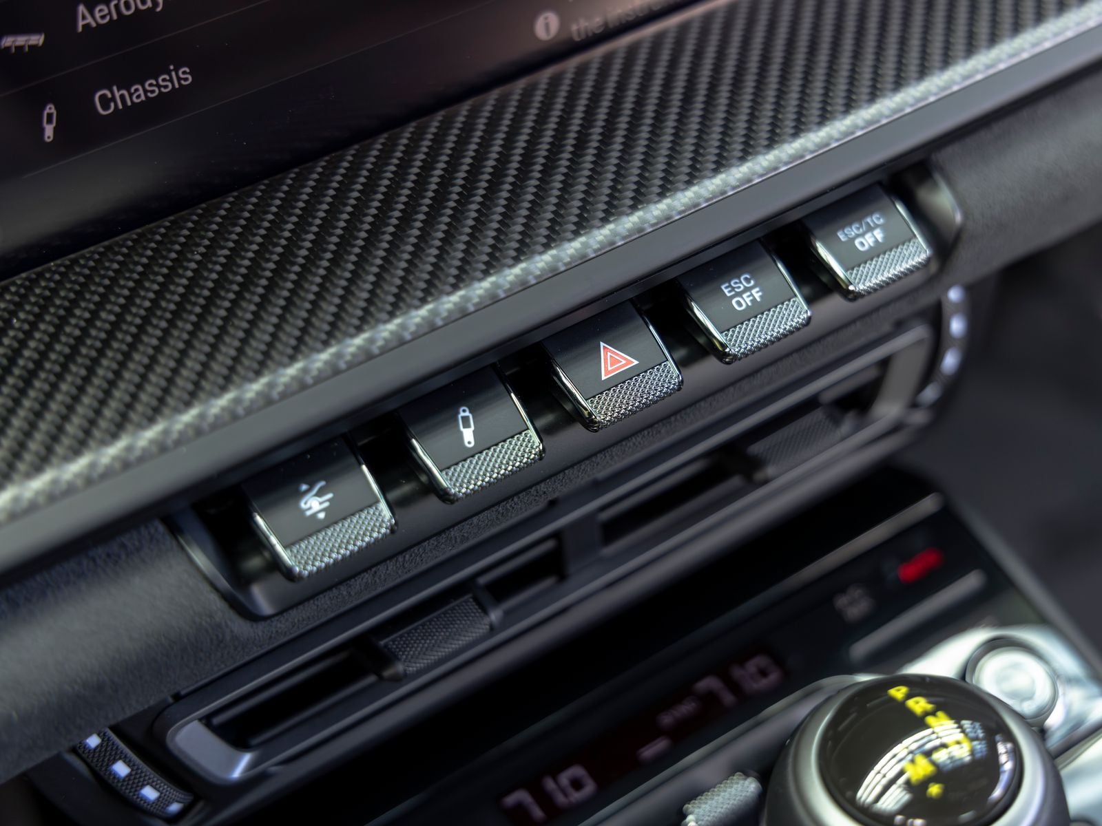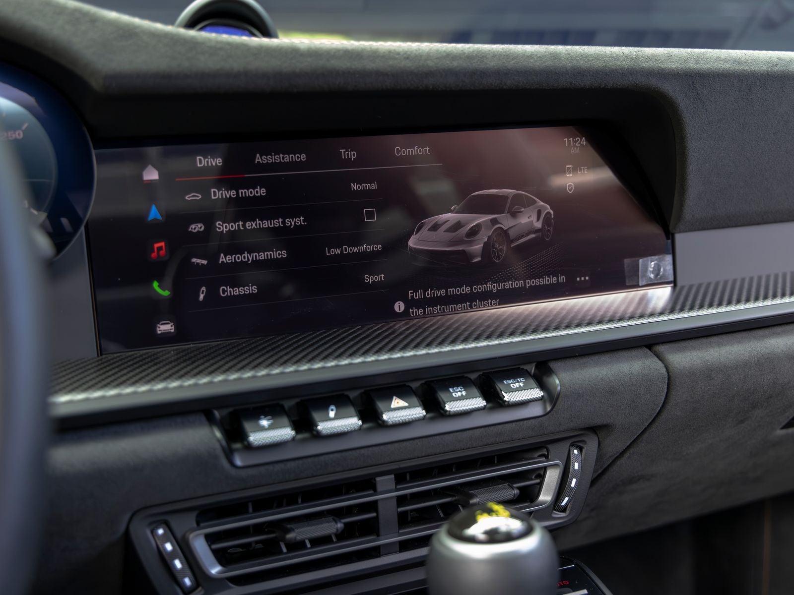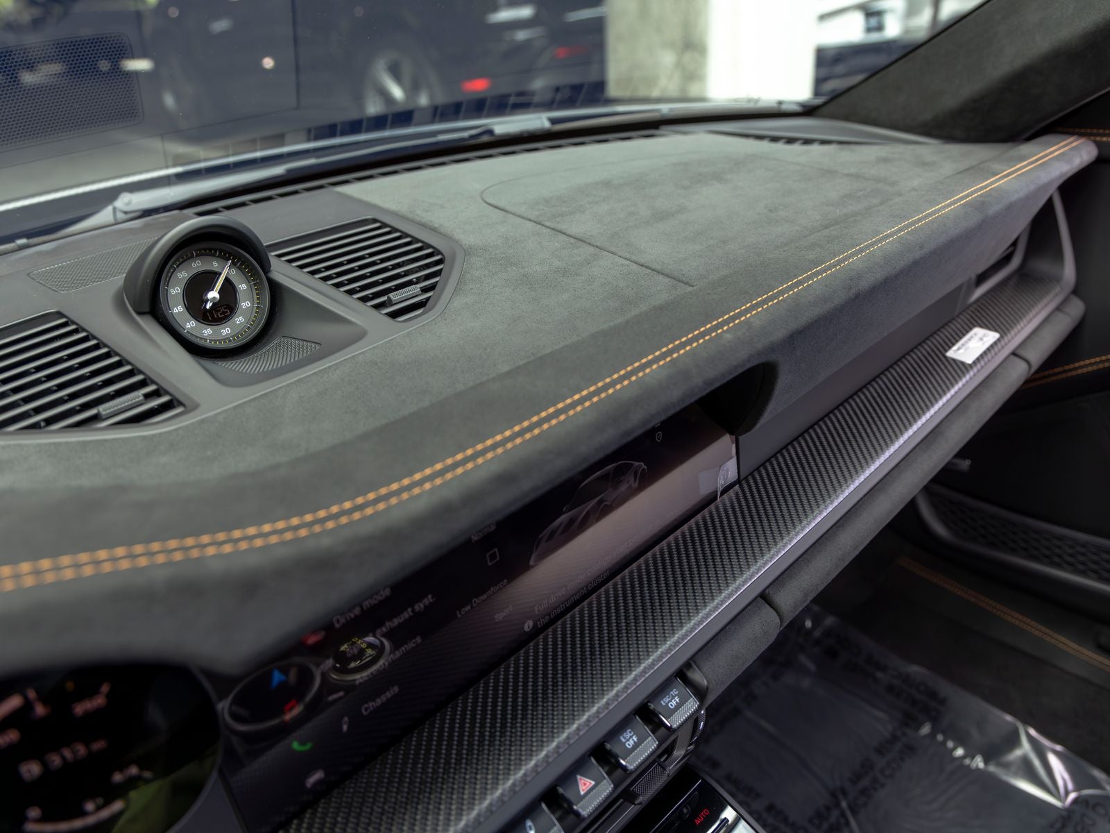 Equipped with the Weissach Package, this example emphasizes maximum weight savings and motorsport-derived engineering through extensive use of carbon fiber and lightweight components. The Front Axle Lift System enhances everyday usability, while Porsche Ceramic Composite Brakes (PCCB) deliver exceptional stopping power and fade resistance under extreme conditions. An extended range fuel tank further supports longer road drives or demanding track sessions.