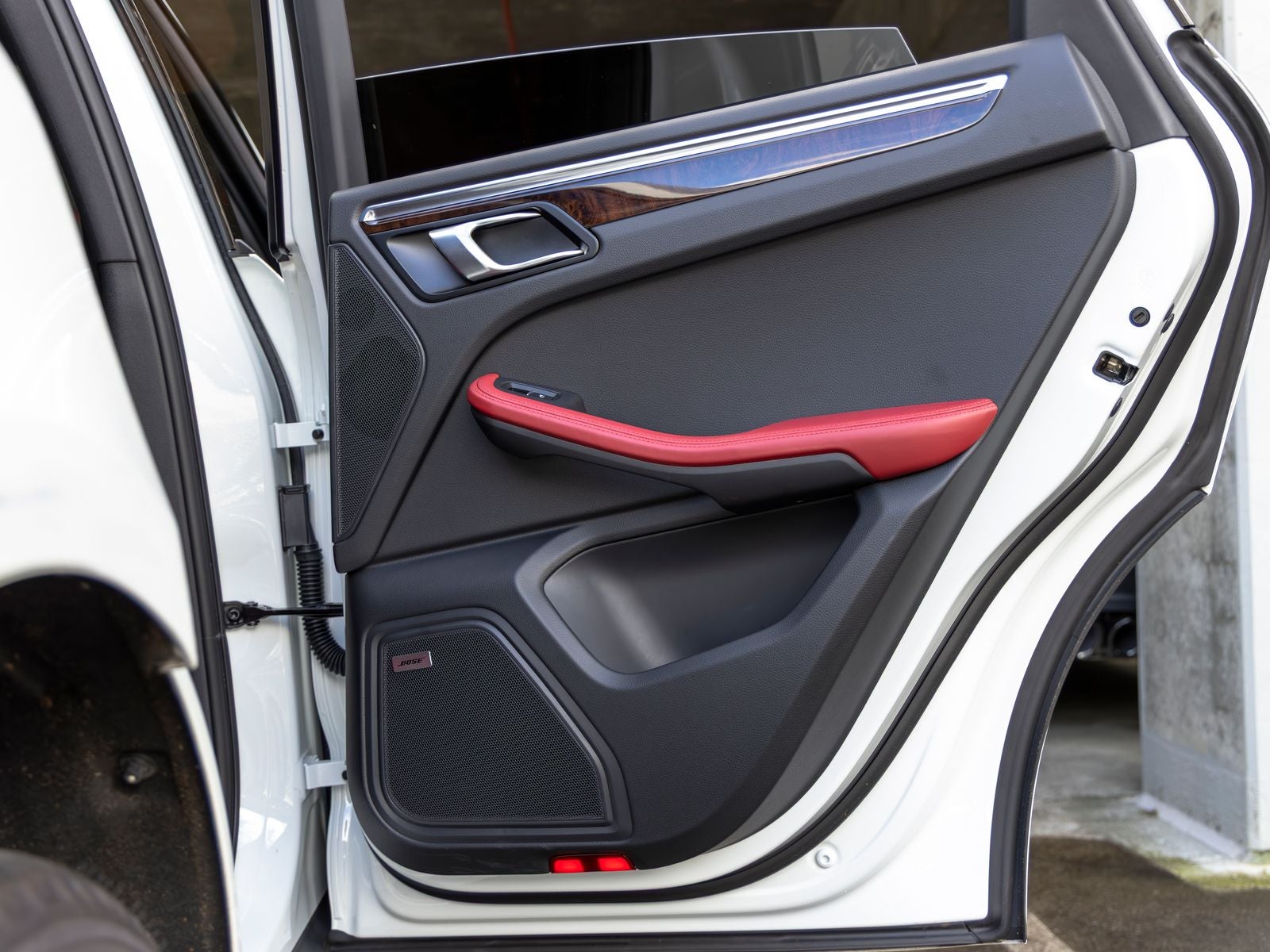 Additional highlights include a BOSE Surround Sound System for an immersive audio experience, interior trim in Dark Walnut for a refined touch, and under-door puddle light projectors that add a unique visual element.