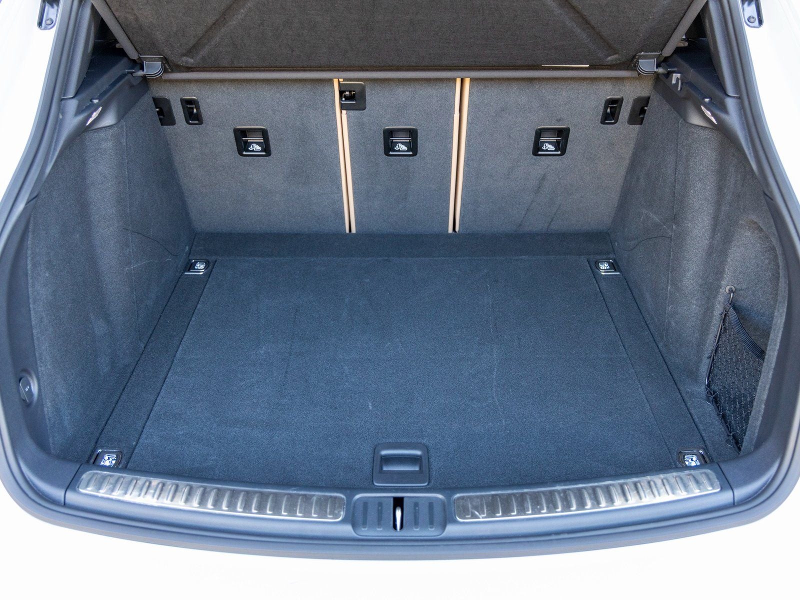 The exterior is equally well-appointed, featuring 20-inch Macan S wheels in highly polished dark titanium, side blades painted in exterior color, and roof rails in high-gloss black, all complementing the elegant Carrara White Metallic finish. A trailer hitch without tow ball adds versatility for those who need additional capability without compromising the vehicles sleek appearance.